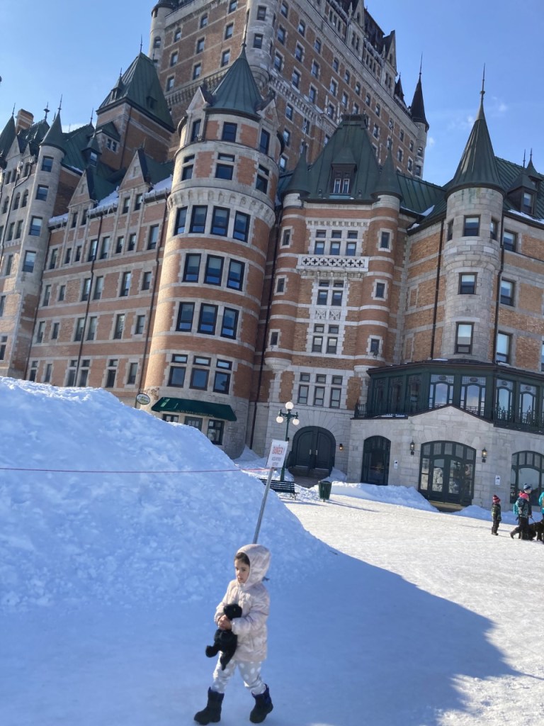 “Wake up,” said mom. “Today we are going to have a tour of old Quebec City!” We all got ready and ordered some breakfast from the royal hotel service. When it was delivered, we ate it up. Soon my mom persuaded me we should do the scavenger hunt so me and my mom went to the front desk because a staff member told us earlier the first clue was there. The first letter of the message was C, and the clue was: The place where you fill your tummies. I thought it meant the restaurant, it was downstairs so that is where we went. A lot of other clues were downstairs too, so we kept looking there. The basement looked like a museum! It was filled with amazing history about the hotel. The last clue was upstairs so that’s where we went, and the clue was: wherever you get your room keys. We thought it was the front desk, so we went there to find our prizes. Then we saw there was a basket with a bunch of cool prizes behind the front desk. I picked a 3-D zebra puzzle and my mom got a small crown for my sister.